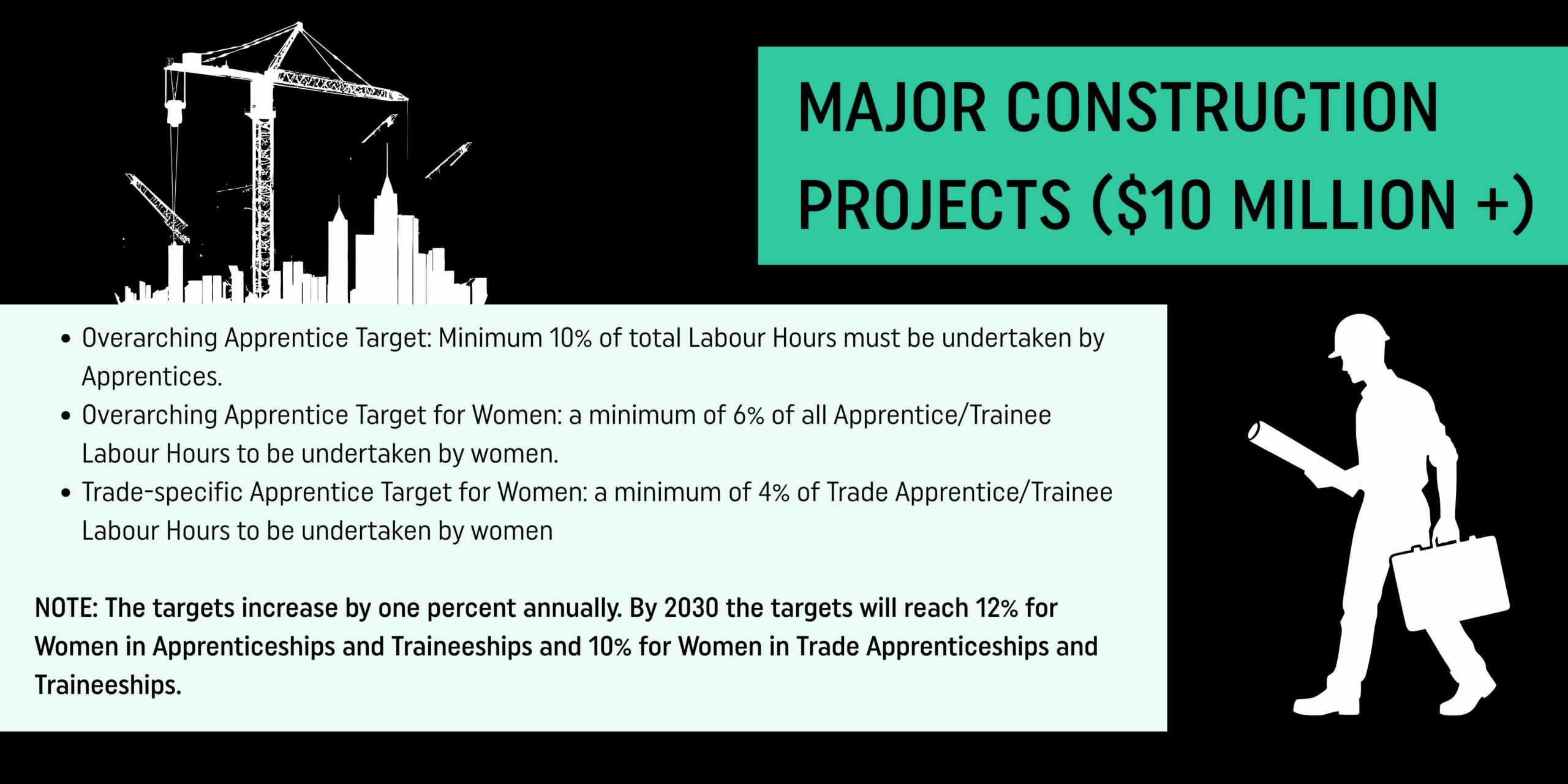 - The minimum percentage of total labour hours on a Major Construction Project that must be undertaken by apprentices