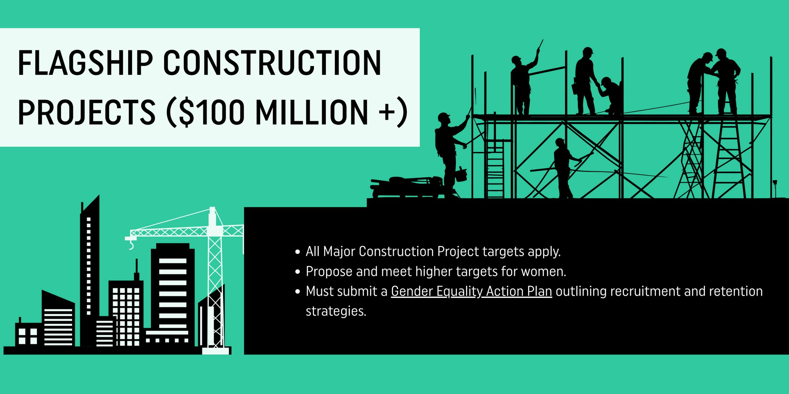 - The minimum percentage of total Labour Hours on a Flagship Construction Project that must be undertaken by Women Apprentices in trade roles