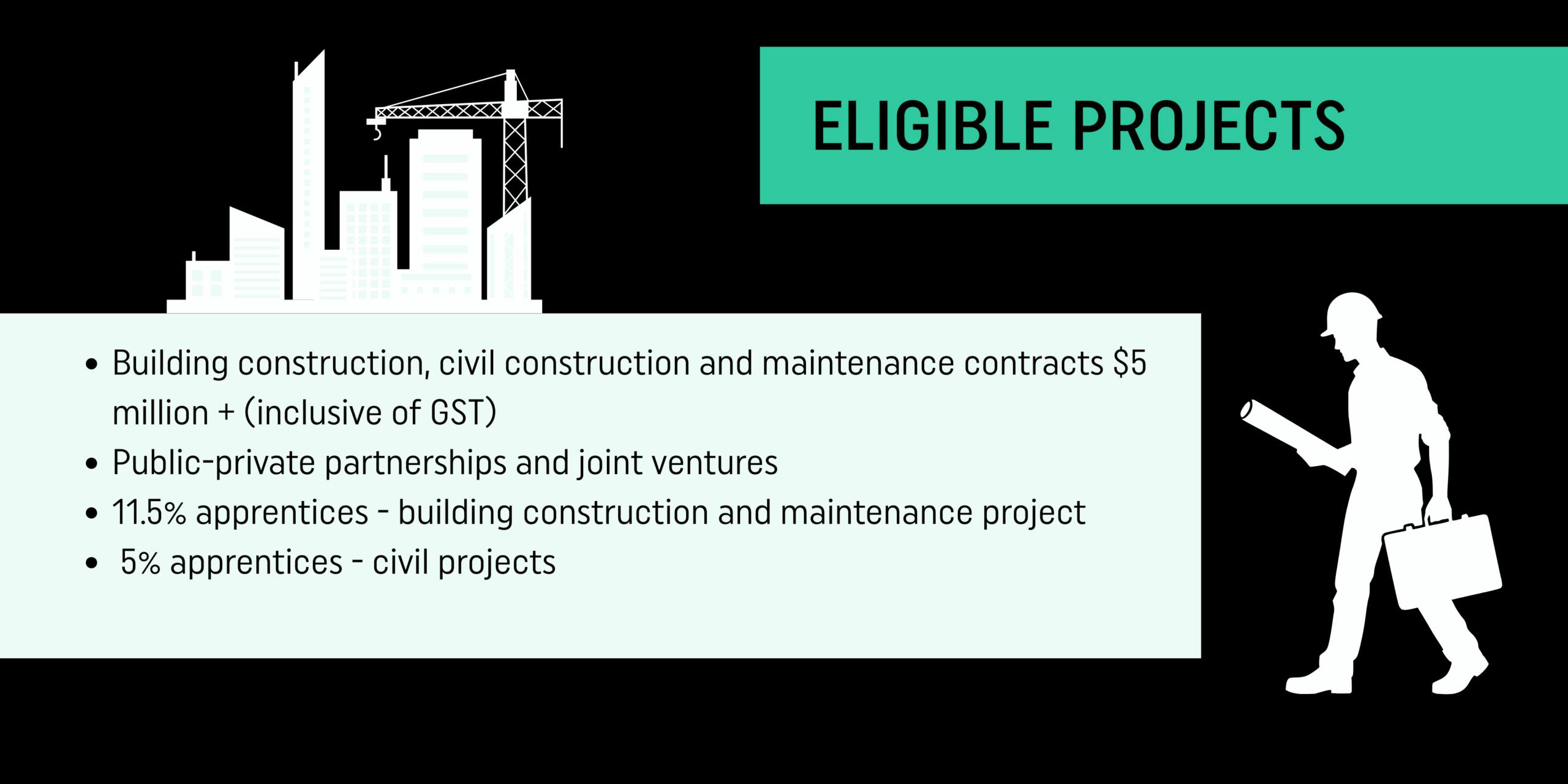 •  The required share (%) of those workers who must be apprentices or trainees (5% civil & 11% construction projects)